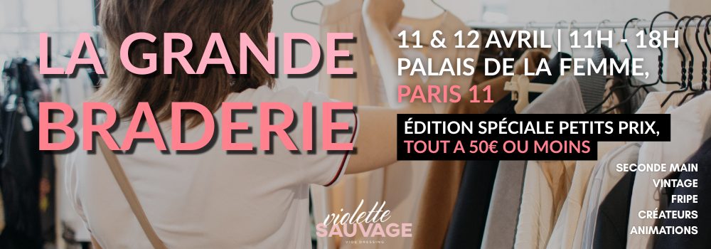 RAPPEL : Vous avez sélectionné un stand pour notre édition spéciale LA GRANDE BRADERIE CHIC VIOLETTE SAUVAGE : tous les articles proposés à la vente sur votre stand doivent être affichés à 50€ maximum et ne pas provenir de marques de mass fast fashion. Tout exposant ne respectant pas cette règle pourra être refusé le jour de l’événement, sans remboursement, afin de garantir l’esprit de cette édition. ESPACE BASIC